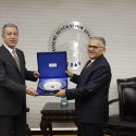 Milli Savunma Bakanı Hulusi Akar, Başkan Memduh Büyükkılıç’a Bakanlığın bir plaketini verdi ve hayırlı olsun dileklerinde bulunarak “Başarılı çalışmalarınızın devam edeceğine inanıyorum” dedi.