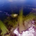 Öte yandan, havadan görüntülenen ve sular altında kalan Eski Kuşçu köyü yolu da kartpostallık görüntü oluşturdu.