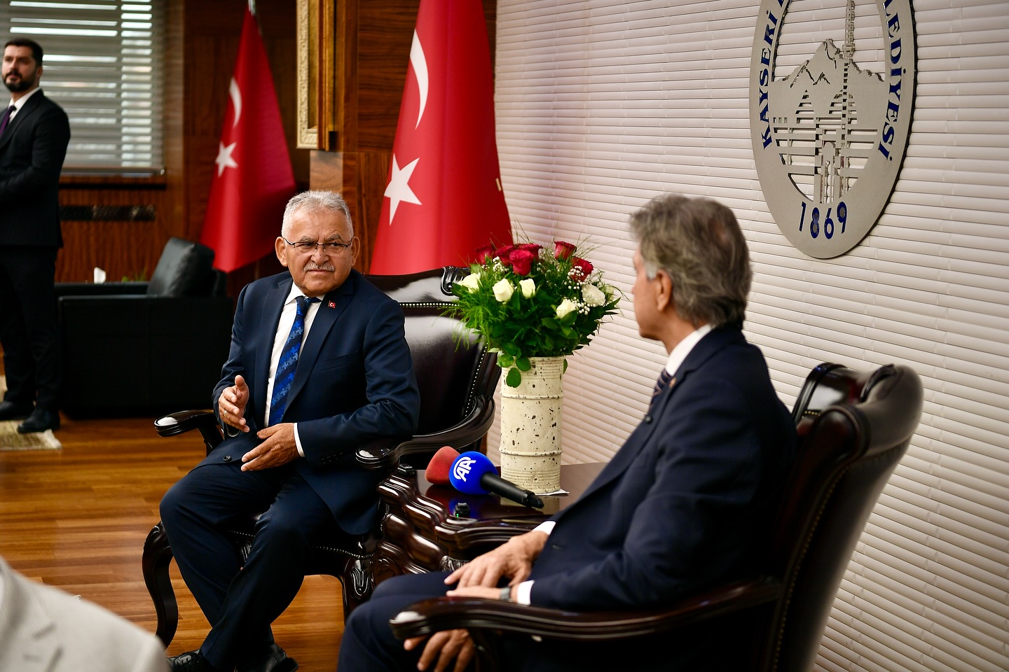 Kayseri Büyükşehir Belediye Başkanı Dr. Memduh Büyükkılıç, AK Parti Genel Başkan Yardımcısı, Yerel Yönetimler Başkanı Mustafa Demir’i makamında ağırladı. Başkan Büyükkılıç, ziyaretten duyduğu memnuniyeti dile getirerek eser ve hizmet siyaseti vurgusu yaparken, AK Parti Genel Başkan Yardımcısı Demir ise “Değerli Memduh Başkan’ımızın şahsında, Kayseri Büyükşehir Belediyesi’ne, çalışanlarına, emektarlarına teşekkür ediyorum, tebrik ediyorum” dedi.