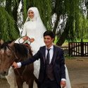 Kayseri’de, biniciliği seven gelin, düğün öncesinde Sultan Sazlığı’nda ata binerek fotoğraf çektirdi.