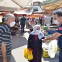 Zabıta ekipleri, vatandaşları hijyen kurallarına dikkat etmeleri ve maske kullanımına özellikle de alışveriş esnasında özen göstermeleri konusunda uyarıyor.