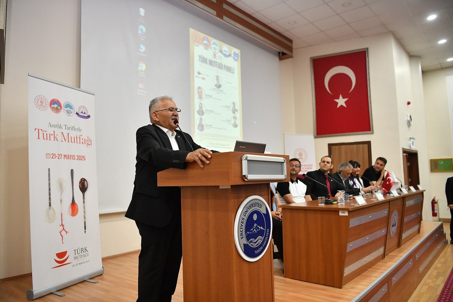 Bu çerçevede Başkan Dr. Memduh Büyükkılıç, Cumhurbaşkanlığı, Kültür ve Turizm Bakanlığı, Kayseri Büyükşehir Belediyesi ile Erciyes Üniversitesi iş birliğinde gastronomi derneklerinin de destekleriyle Erciyes Üniversitesi Turizm Fakültesi’nde düzenlenen Asırlık Tariflerle Türk Mutfağı Haftası programına katıldı.