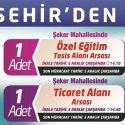 Büyükşehir Belediyesi, Şeker Mahallesi’nde yer alan ve mülkiyeti Büyükşehir Belediyesi’ne ait olan arsalar için satış ihalesi yapacak. İhale 12 Aralık Çarşamba günü saat 13.45’te gerçekleştirilecek. İhalede 9 adet konut alanı arsası ile 7 adet konut+ticaret alanı arsası yer alıyor. Konut alanı arsaları 2 milyon 500 bin ile 3 milyon TL arasındaki muhammen bedellerle, konut+ticaret alanı arsaları ise 3 milyon TL ile 5 milyon TL arasındaki muhammen bedellerle satışa sunulacak.