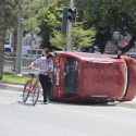 Polis ekipler de, kazanın meydana geldiği caddede güvenlik önlemi aldı. Yan yatan otomobil, çekici ile kaldırıldı.