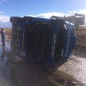 Kayseri’de direksiyon hakimiyeti kaybolan tırın yan yatması sonucunda bir kişi yaralandı.