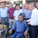 Yahyalı Belediye binası önünde yapılan mini törende, Murat Öztürk’e tekerlekli sandalyesi Yahyalı Belediye Başkanı Esat Öztürk tarafından verildi.