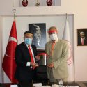 Gençlik ve Spor İl Müdürü Murat Eskici Covid-19’la mücadele kapsamında Gençlik Merkezi tarafından üretilen Siperlik Maskelerden 600 adetini Kayseri’deki Berberler ve Kuaförlere dağıtılmak üzere Berberler ve Kuaförler Odası Başkanı Rıfat Alparslan’a takdim etti.