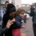 Emniyetteki işlemleri tamamlanan Tuğba D., emniyet çıkışında kucağındaki çocuklarıyla yüzünü kapatarak gizlenmeye çalıştı.