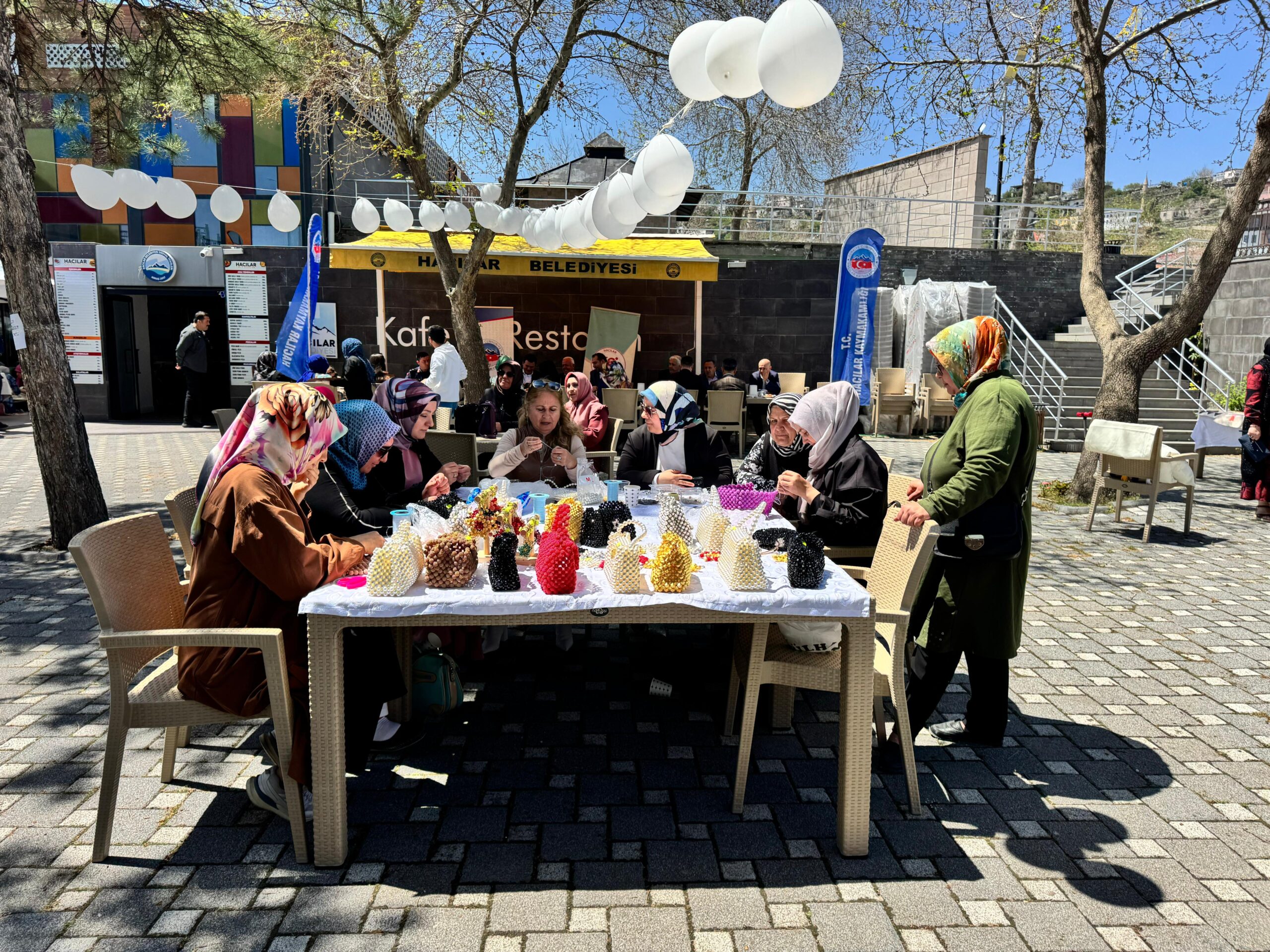 Hacılar Aile Destek Merkezi (ADEM) kursiyerlerinin yıl boyunca hazırladığı el emeği ürünlerin sergilendiği kermes ve sertifika töreni, Hacılar Kafe & Restoran önünde yoğun katılımla gerçekleştirildi.
