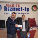 Konuyla ilgili açıklama yapan Hak-İş İl Başkanı ve Hizmet-İş Sendikası Kayseri Şube Başkanı Serhat Çelik sosyal sorumluluk gereği üyelerinin her zaman yanlarında olmaya çalıştıklarını belirterek şu şekilde devam etti, “ Üyelerimizin iyi günlerinde olduğu gibi kötü günlerinde de yanlarında bulunmaya çalışıyoruz. Genel merkezimizin almış olduğu karar neticesinde zor durumda kalan ve mağduriyet yaşayan üyelerimize yine genel yönetim kurulumuzun almış olduğu miktar kadar yardım yapılıyor. Bu neticede de Kocasinan Belediyesinde çalışan Remzi Tatlı üyemizin geçen ay evi yanmıştı. Bizlerde üyemizin mağduriyetini şube başkanlığımız olarak gidermeye çalıştık. Konuyla ilgili Genel Merkezimize bilgi verdik. Sosyal sorumluluk projesi kapsamında üyemizin maddi hasarına ilişkin mağduriyetini giderecek ölçüde sosyal yardım yaptık” dedi.