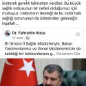 Toplantıyla ilgili olarak Ali Ramazan Benli “Gece saat 23.49’da başlayan ve 02.00’da biten bir telekonferans oldu. Sn. Bakanımız, Bakan Yardımcılarımız, Genel Müdürlerimiz o saatte bile Türkiye’nin dört bir yanından pandemi ile ilgili raporlar alıp, anında çözüm üreterek gerekli talimatları verdiler. Bu büyük sağlık ordusunun bir neferi olduğumuz için mutluyuz. Halkımızın desteği ile bu ciddi halk sağlığı sorununun da üstesinden geleceğiz inşallah” notunu, Sağlık Bakanı Dr. Fahrettin Koca’nın telekonferans yaptığı andaki fotoğrafı ile birlikte sosyal medya hesabından paylaştı.