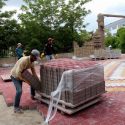 Kayseri’nin Develi ilçesinde İşitme engelliler okulu çevresindeki desenli parke çalışmalarında sona yaklaşıldı.