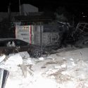 Kayseri’de bir kamyon bahçe duvarını yıkarak park halindeki bir araca çarpıp yan yattı.