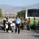 Kaza, Erkilet Bulvarında meydana geldi. Edinilen bilgiye göre, E.Ç. yönetimindeki 35 AAJ 469 plakalı otomobil, başka bir otomobilin sıkıştırması üzerine, durakta bekleyen 38 GK 063 plakalı halk otobüsüne çarptı. Otomobilin hurdaya döndüğü kazada, şoför ile S.Ç. yaralandı. Yaralılar sevk edilen ambulans ile hastaneye kaldırılarak tedavi altına alındı. Kazaya karışan otomobilde çekici ile kaldırıldı.