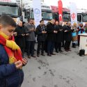 İl Müftüsü Güven’in konuşmasının ardından dualar edildi ve ihtiyaç malzemelerini taşıyan tırlar uğurlandı.