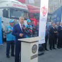 Konuşmaların ardından ihtiyaç malzemelerini taşıyan tırlar, dualar ile uğurlandı.