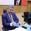 Melikgazi Belediyesi’nde korona virüs için olağanüstü meclis toplantısı düzenlendi. 4 maddenin görüşülüp karara bağlandığı toplantı öncesinde meclis üyeleri tedbir için eldiven giydi, birer koltuk mesafeyle oturdu.