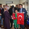 Duygu dolu anların yaşandığı ziyarette, şehit ailesine çeşitli hediyelerin yanı sıra Kuran-ı Kerim ve Türk Bayrağı verildi.