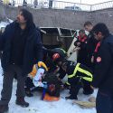 Otomobil köprüden uçtu; sıkışan sürücü kurtarıldı