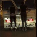 Kayseri’de Sivas Caddesi’nde akşam saatlerinde çekilen görüntüde, iki patenli genç yoğun trafikte ilerleyen bir kamyonetin arkasına asılarak yolculuk etti. Vatandaşlar tarafından görüntülenen gençler arkasına asıldıkları kamyonetle yaklaşık 1.5 kilometre kadar gitti. Tehlikeye aldırmayan gençler, görüntüyü kaydeden vatandaşın da yüreğini ağzına getirdi.