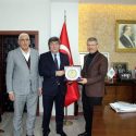 Görüşme sonrasında Başkan Dursun Ataş tarafından Kayseri Pancar Ekiciler Kooperatifi Başkanı Hüseyin Akay’a ilçeye yaptığı yatırımlar ve çiftçilere verdiği desteklerden dolayı plaket takdim edildi.