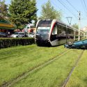 Kayseri’de takla atan otomobil tramvay yoluna girdi.