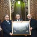 Konuşmaların ardında Başkan Büyükkılıç tarafından caminin yapımını üstlenen hayırsever Bayram Kılıç’a teşekkür plaketi verildi. Plaketin ardından Başkan Yalçın ve diğer protokol üyelerince Bayram Kılıç’a el yazması Ayet-el Kürsi tablosu hediye edildi.