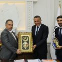 Genel merkezleri Kayseri’de bulunan Tüm İşçi Sendikaları Konfederasyonu (TÜM-İŞ) Genel Başkanı Mahmut Şahin ve beraberindeki Genel Başkan Yardımcısı Veysel Yalçındağ ile il yöneticileri Celal Yavuzer ve Murat Abi, Van Büyükşehir Belediyesi Genel Sekreteri Mustafa Yalçın’ı makamında ziyaret etti. Misafirleri ile bir süre makamında görüşen Yalçın, ziyaretten duyduğu memnuniyeti dile getirerek heyete teşekkür etti. Ziyaretin ardından TÜM-İŞ Genel Başkanı Mahmut Şahin, Yalçın’a üzerinde Osmanlı Tuğrası bulunan tablo ve çeşitli hediyeler takdim etti. Yalçın ise heyete Büyükşehir Belediyesi’nin tarafından basılan kitap seti hediye etti.