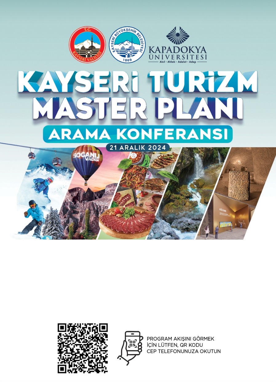 Kayseri Turizm Master Planı Arama Konferansı, Kadir Has Kongre Merkezi’nde, 21 Aralık 2024 Cumartesi günü saat 10.00’da gerçekleşecek.