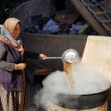 Kayseri’nin Yeşilhisar ilçesinde üzüm bağlarındaki bozumun ardından pekmez kazanları kaynamaya başladı.