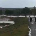 Su taşkınları nedeniyle köy yolu da ulaşıma kapandı. O anlar yine vatandaşların cep telefonu ile çektiği görüntülere yansıdı.